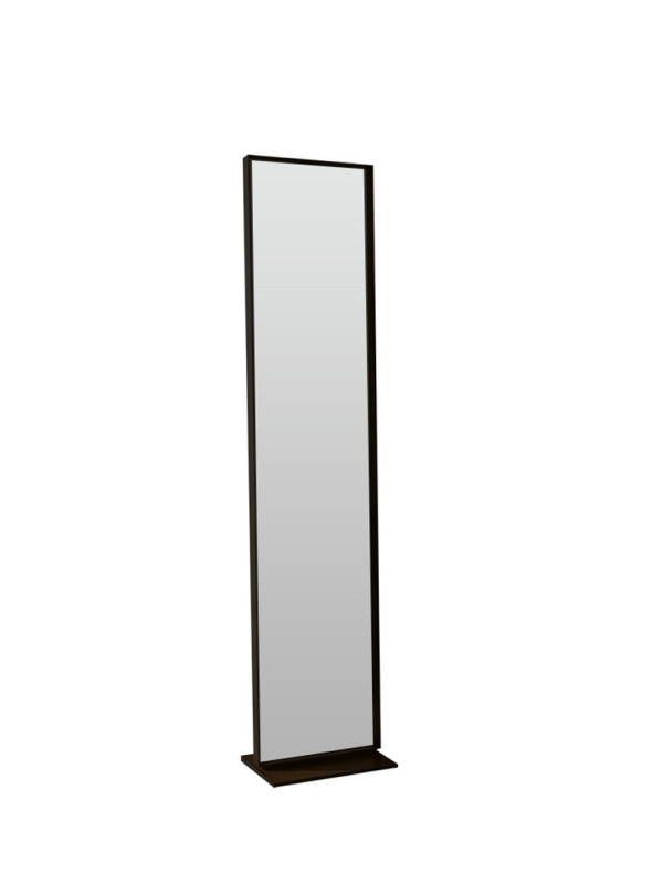 Тонкая стальная рама и основание зеркала покрыты краской порошковым методом, что придает изделию угольно-черный цвет. Компактная опора зеркала не занимает много места и при необходимости зеркало можно переместить на новое место, например, из гостиной в ванную комнату.